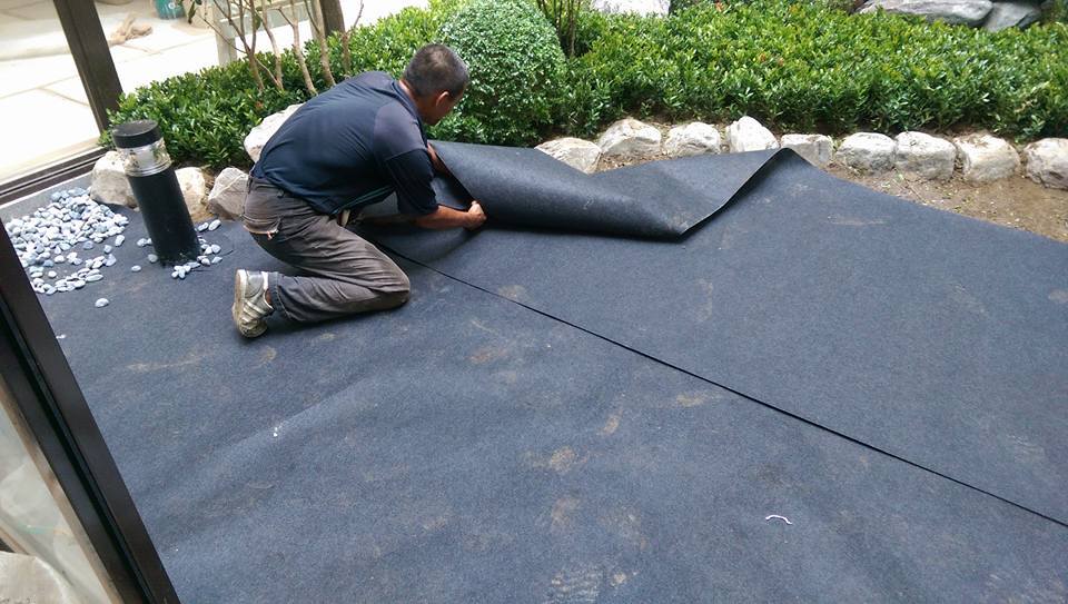 為卵石區,先舖上一層不織布,隔離地上的泥土